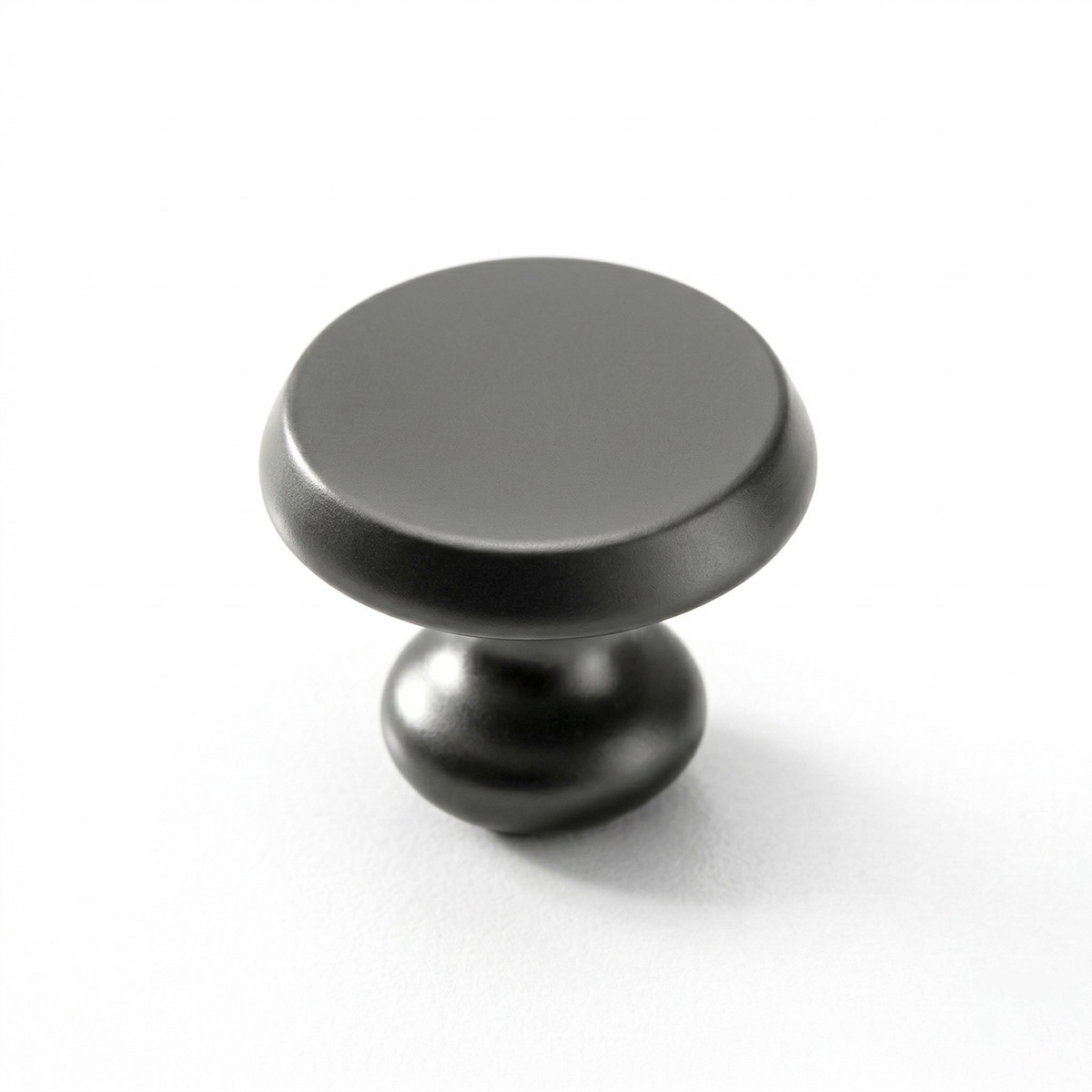 A diferencia de los pomos curvos tradicionales, la versión negra del modelo Huaraz apuesta por la sombra y la textura. Su acabado mate absorbe la luz de forma elegante, permitiendo que el herraje se integre perfectamente en frentes de colores oscuros o genere un contraste gráfico impecable sobre maderas claras y melaminas neutras. Su base bulbosa asegura una transición firme, proporcionando una sensación de calidad técnica superior al tacto.