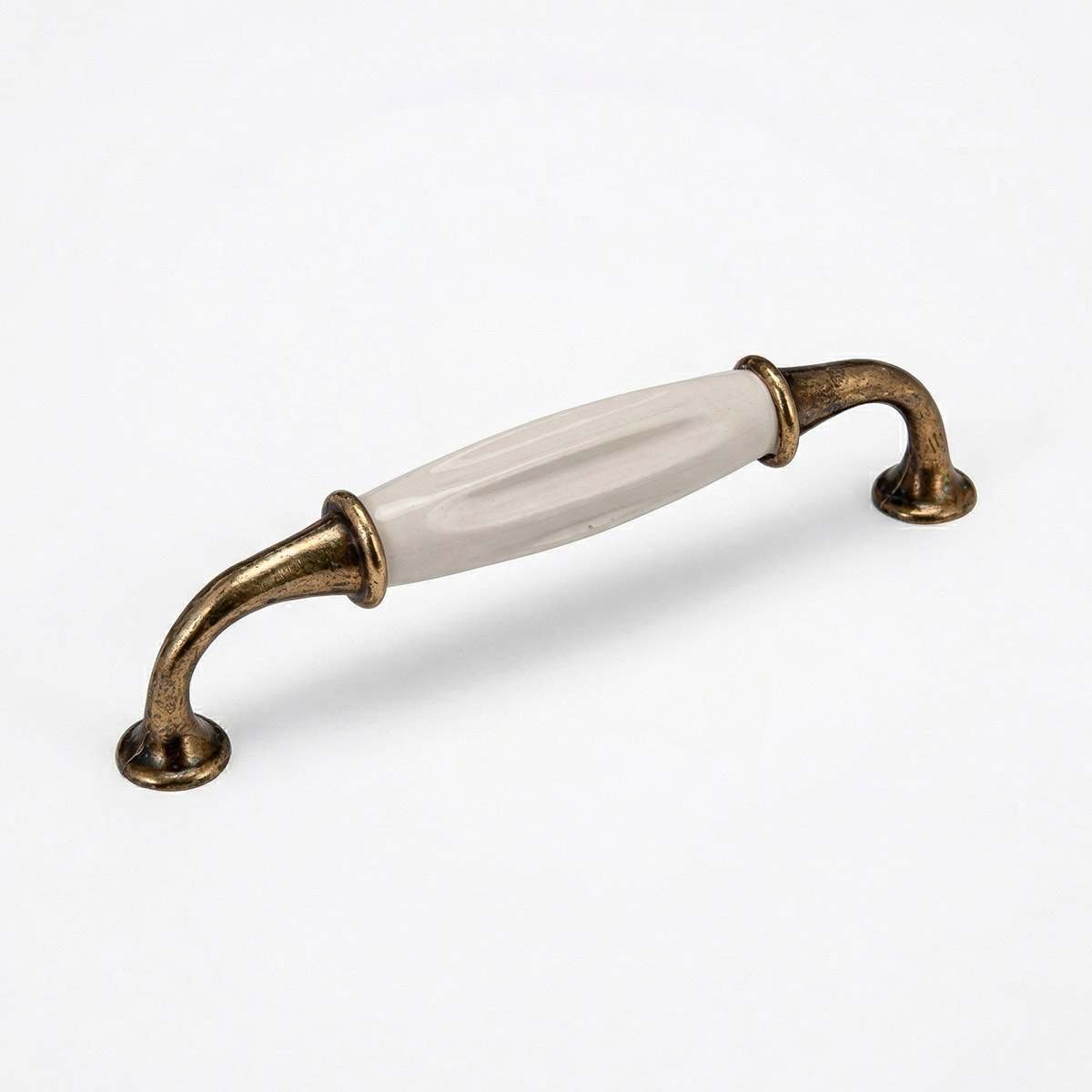 El diseño de este tirador destaca por su pieza central de porcelana en un tono crema cálido (denominado amarillo en herrería clásica), que se ensancha en el medio para un calce perfecto de la mano. Sus extremos de metal trabajado aportan solidez y ese aire de «herraje de antes» que queda increíble tanto en muebles de madera natural como en frentes pintados o laqueados.